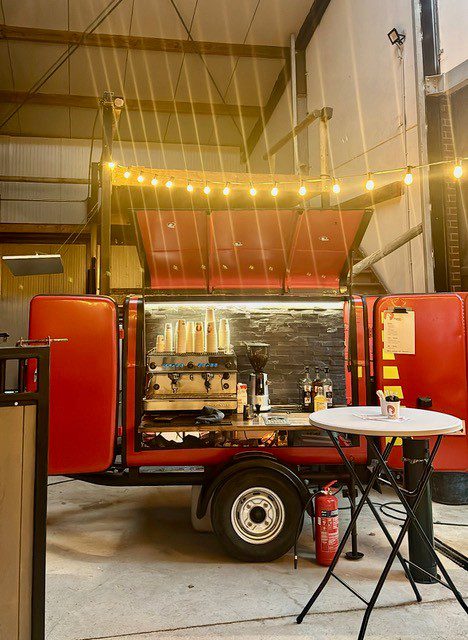 Wat ooit begon als een oude brandweerwagen, groeide uit tot een stijlvolle mobiele espressobar die de geur van vers gebrande koffie de streek in stuurt.
